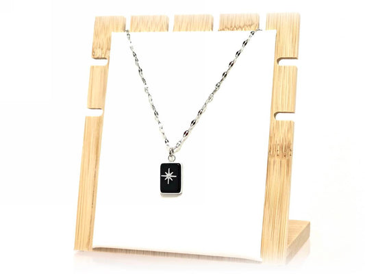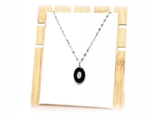 Κολιέ Πέτρα 316L, αλυσίδα με αχάτη σε χρώμα Ασημί
