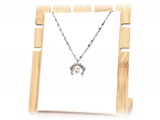 Κολιέ Ατσάλι 316L, αλυσίδα με πέρλα σε χρώμα Ασημί
