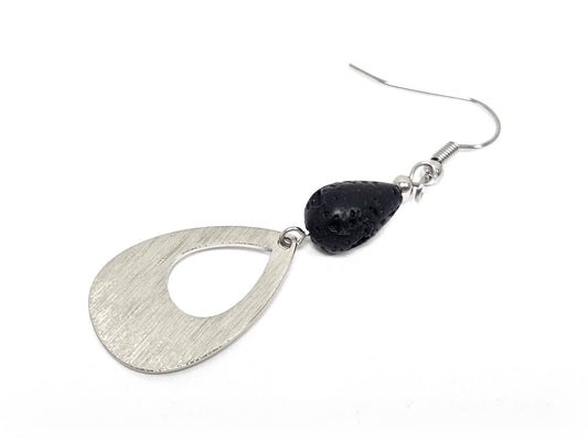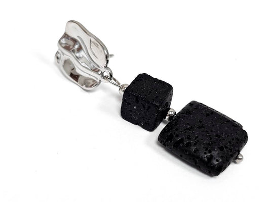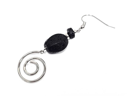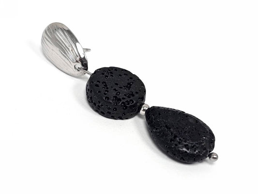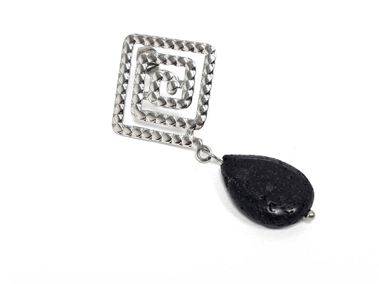 Σκουλαρίκια Πέτρα Ατσάλι 316L, σπέιρα με λάβα σε χρώμα Ασημί