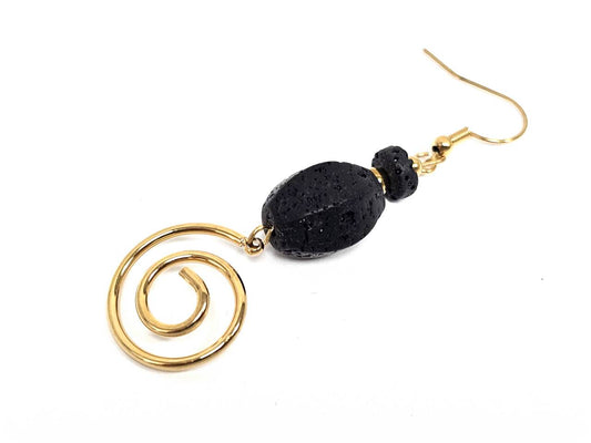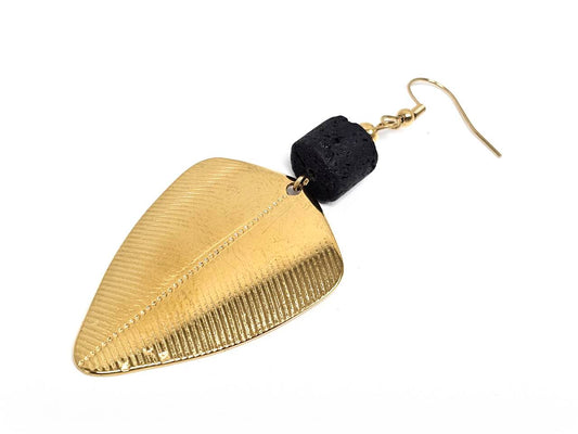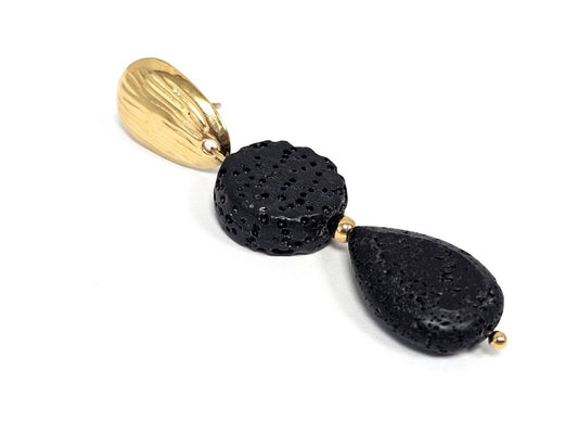 Σκουλαρίκια Πέτρα Ατσάλι 316L, σπέιρα με λάβα σε χρώμα Χρυσαφί