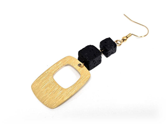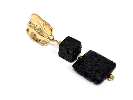 Σκουλαρίκια Πέτρα Ατσάλι 316L, με λάβα σε χρώμα Χρυσαφί
