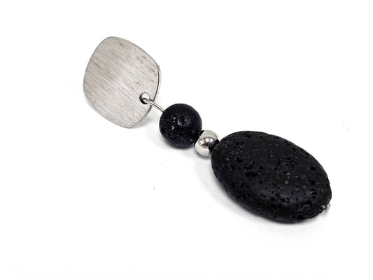 Σκουλαρίκια Πέτρα Ατσάλι 316L, με λάβα σε χρώμα Ασημί