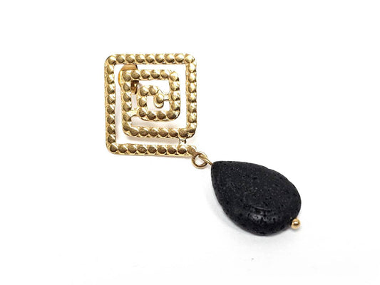 Σκουλαρίκια Πέτρα Ατσάλι 316L, μαίανδρος με λάβα σε χρώμα Χρυσαφί