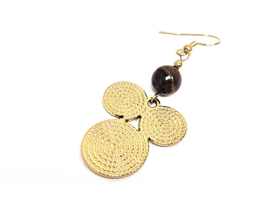 Σκουλαρίκια Πέτρα Ατσάλι 316L, σπείρα με μάτι Τίγρης σε χρώμα Χρυσαφί