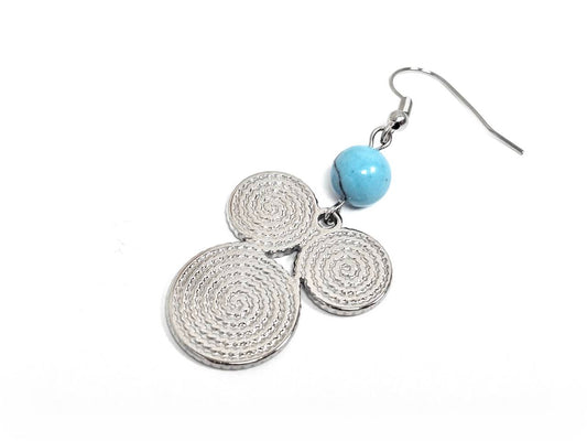 Σκουλαρίκια Πέτρα Ατσάλι 316L, σπέιρα με τυρκουάζ σε χρώμα Ασημί
