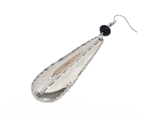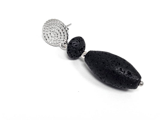 Σκουλαρίκια Πέτρα Ατσάλι 316L, σπέιρα με λάβα σε χρώμα Ασημί