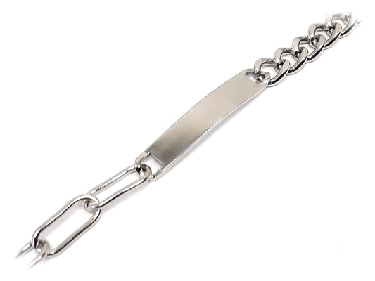 Ασημί Βραχιόλι Αλυσίδα από Ατσάλι με Ορθογώνιους Κρίκους και Μεταλλική Πλάκα | 2112-104A