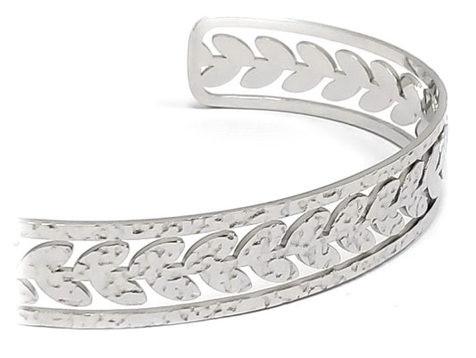 Ασημί Βραχιόλι με Ανοιχτή Σχεδίαση και Μοτίβο Φύλλων | 2112-118A