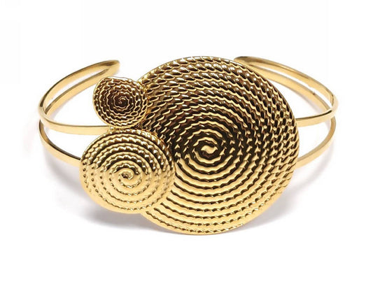 Χρυσαφί Μοντέρνο Βραχιόλι με Σπειροειδή Μεταλλικές Λωρίδες και Γυαλιστερή Επιφάνεια | 2412-221X