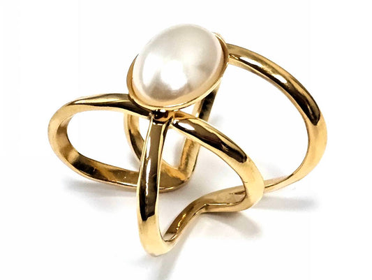 Γυναικείο Χρυσό Δαχτυλίδι με Οβάλ Μαργαριτάρι και Μοντέρνο Σχέδιο | 2512-422X