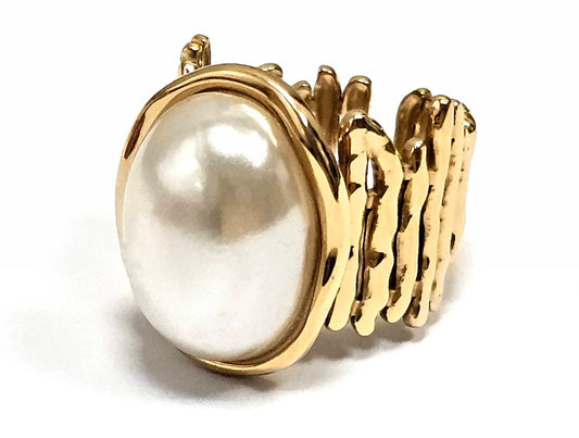 Γυναικείο Δαχτυλίδι με Οβάλ Μαργαριτάρι και Ανάγλυφο Χρυσό Σχέδιο | 2512-425X