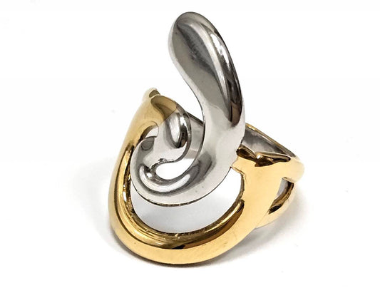 Γυναικείο Δαχτυλίδι Διπλού Τόνου σε Χρυσό & Ασημί με Μοντέρνο Αφηρημένο Σχέδιο | 2512-427A