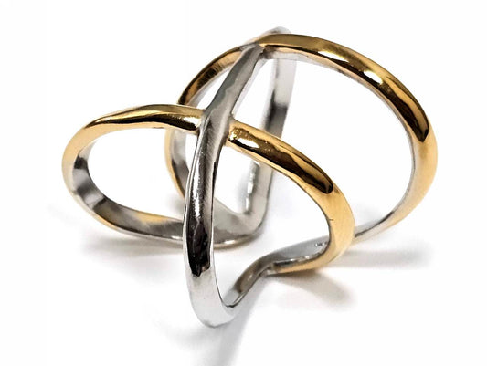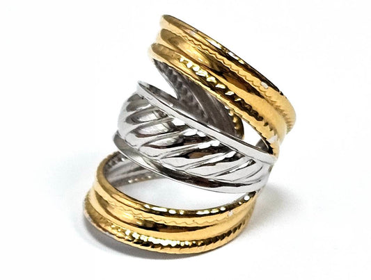 Γυναικείο Δαχτυλίδι με Κυματιστές Λωρίδες σε Χρυσό και Ασημί Χρώμα | 2512-430X