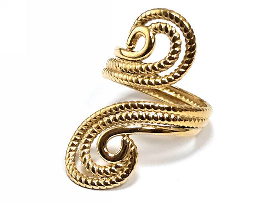 Χρυσό Γυναικείο Δαχτυλίδι με Κυματιστό Σχέδιο και Ανάγλυφα Μοτίβα | 2512-451X