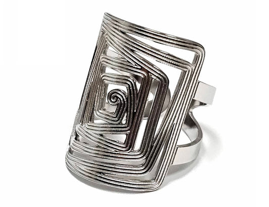 Γυναικείο Δαχτυλίδι Σπείρα με Ανάγλυφα Σχέδια από Ατσάλι | 2512-463A