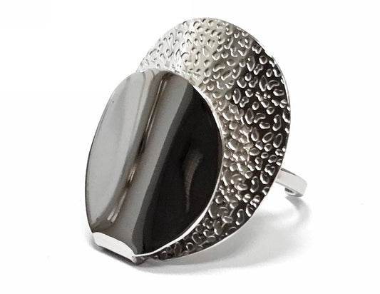 Γυναικείο Δαχτυλίδι Ασύμμετρο με Ανάγλυφο Ασημί Σχέδιο και Σκουρόχρωμο Εσωτερικό | 2512-462A