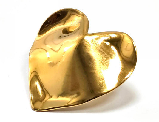 Γυναικείο Δαχτυλίδι Καρδιά από Χρυσό Ατσάλι με Λεία και Κυματιστή Υφή | 2512-464X