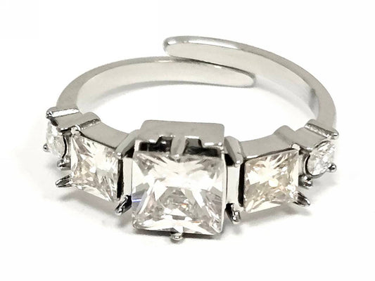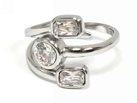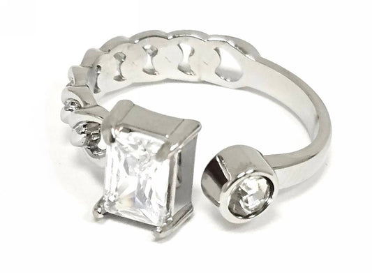 Δαχτυλίδι Ατσάλι 316L, με στρας σε χρώμα Ασημί