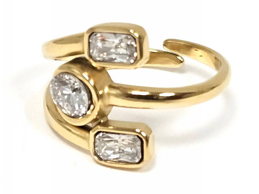 Δαχτυλίδι Ατσάλι 316L, με στρας σε χρώμα Χρυσαφί