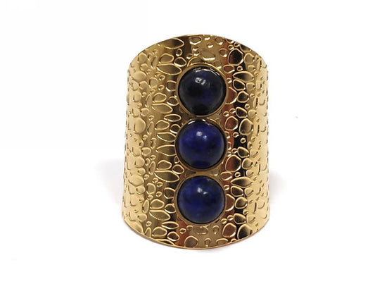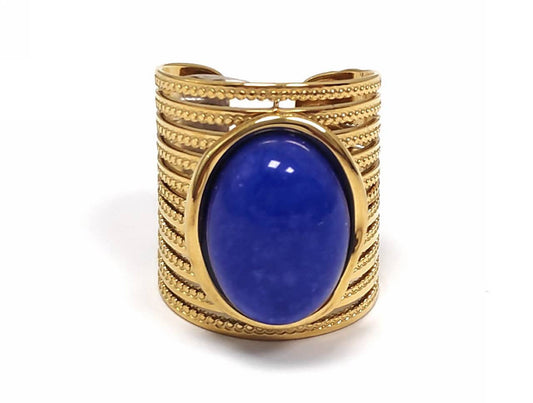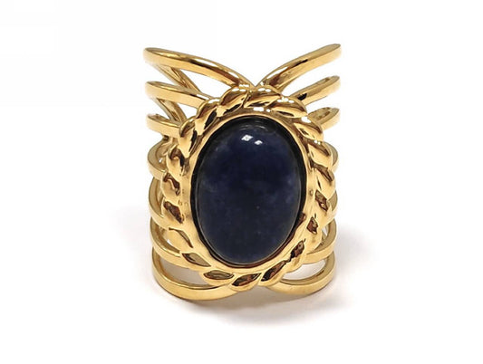 Γυναικείο Δαχτυλίδι με Χρυσές Μεταλλικές Λωρίδες και Μπλε Οβάλ Λίθο | 2412-041X