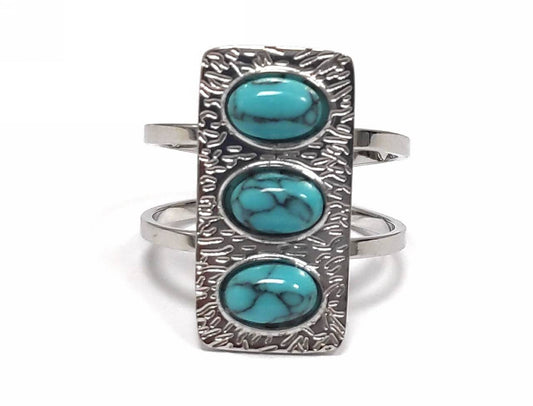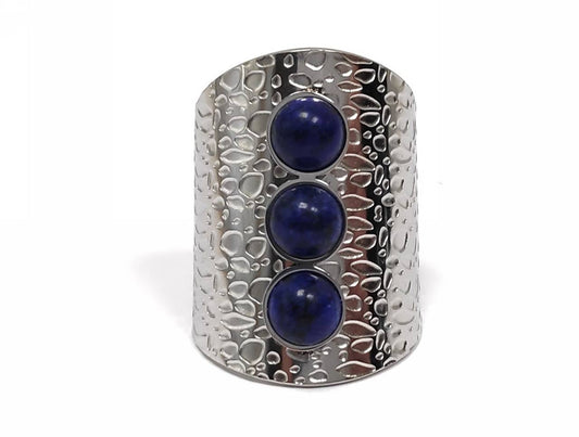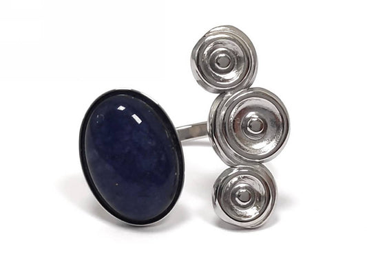 Γυναικείο Δαχτυλίδι από Ατσάλι με Γεωμετρικό Σχέδιο και Γαλάζιες Οβάλ Πέτρες | 2412-052A