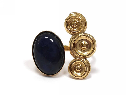 Γυναικείο Δαχτυλίδι με Χρυσό Περίγραμμα και Οβάλ Σκούρο Μπλε Λίθο | 2412-042X