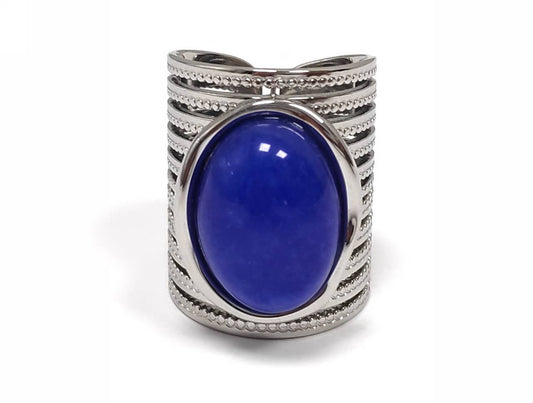 Γυναικείο Ασημένιο Δαχτυλίδι με Πολλαπλές Λωρίδες και Οβάλ Σκούρα Μπλε Πέτρα | 2412-041A