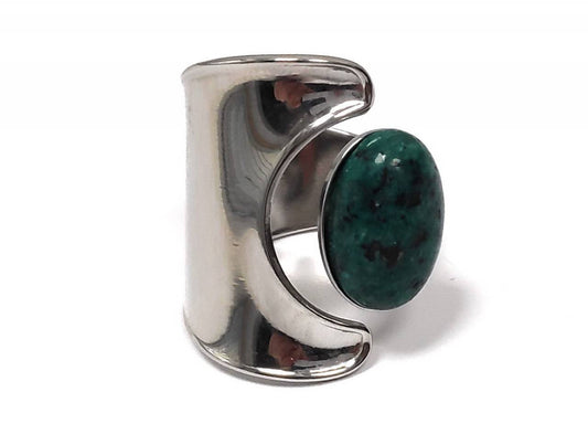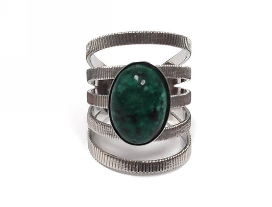 Γυναικείο Δαχτυλίδι Πολλαπλών Στρωμάτων με Οβάλ Σκούρα Πράσινη Πέτρα και Μεταλλική Βάση Ασημί Χρώματος | 2412-047A