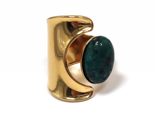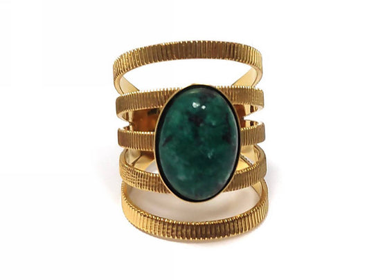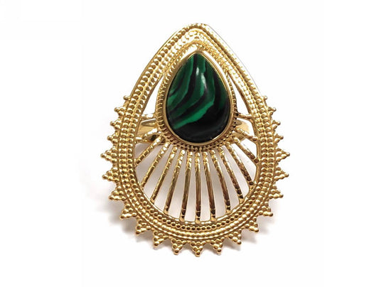 Γυναικείο Δαχτυλίδι από Χρυσό Ατσάλι με Πράσινη Ημιπολύτιμη Πέτρα σε Σχήμα Δάκρυ | 2412-046X