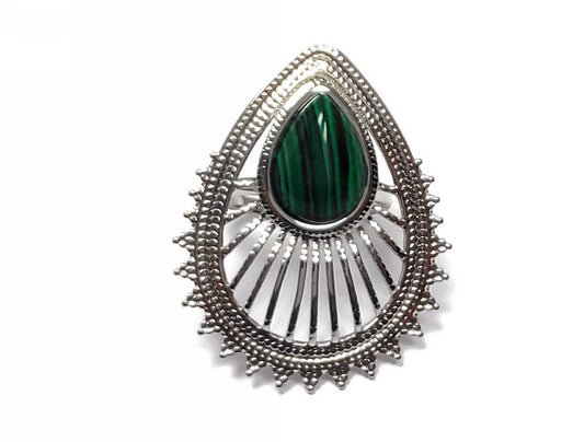 Γυναικείο Δαχτυλίδι με Σχέδιο Δάκρυ και Πράσινη Πέτρα από Ατσάλι | 2412-046A