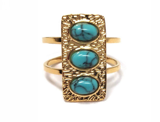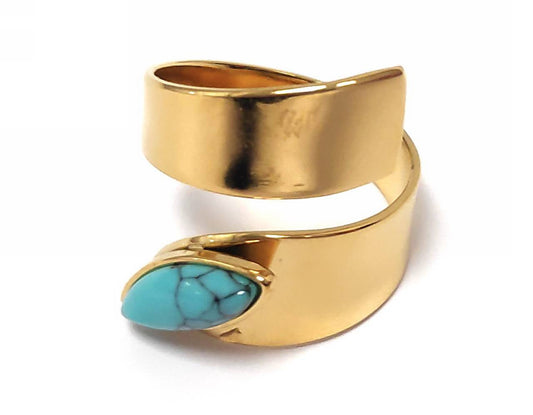 Γυναικείο Δαχτυλίδι από Χρυσό Μέταλλο με Μπλε-Τουρκουάζ Οβάλ Λίθο | 2412-051X