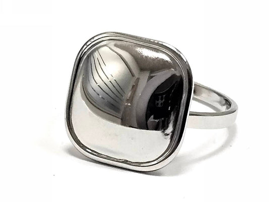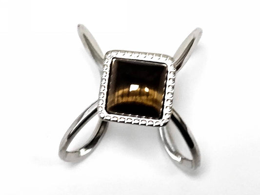 Ασημί Γυναικείο Δαχτυλίδι με Καφέ Τετράγωνη Πέτρα και Μοντέρνο Σχεδιασμό | 2512-403A