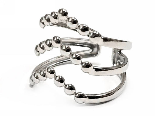 Μοντέρνο Γυναικείο Δαχτυλίδι Ασημένιο με Γεωμετρικό Σχέδιο και Διακοσμητικές Μπάλες | 2422-002A