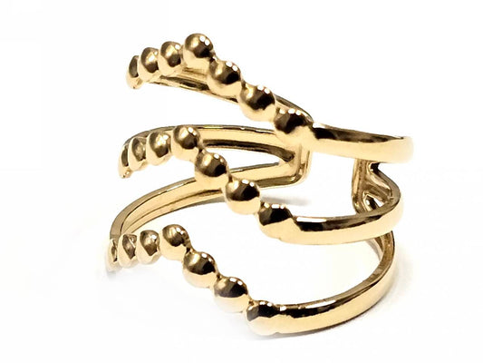 Διπλό Δαχτυλίδι Χρυσού Χρώματος με Στρογγυλά Στοιχεία και Ανοιχτή Δομή | 2422-002X