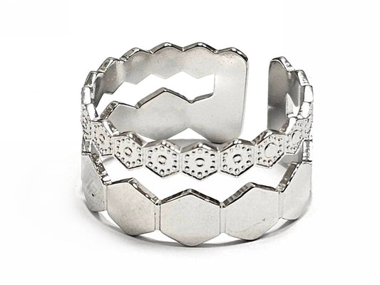 Μοντέρνο Γυναικείο Δαχτυλίδι Ασημένιο με Γεωμετρικά Σχέδια και Ελαστική Φόρμα | 2422-004A