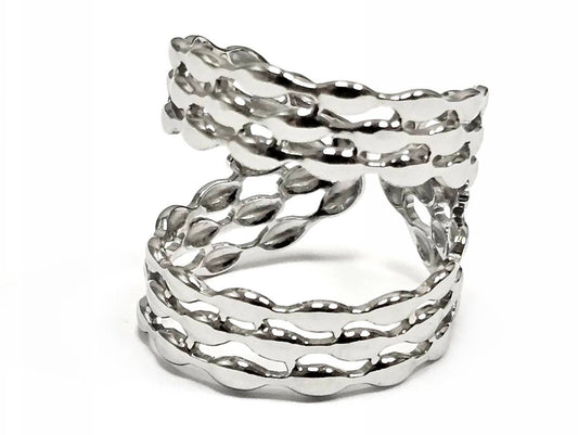 Γυναικείο Ασημένιο Δαχτυλίδι με Ανοιχτή Διάταξη και Ανάγλυφες Λωρίδες | 2422-005A