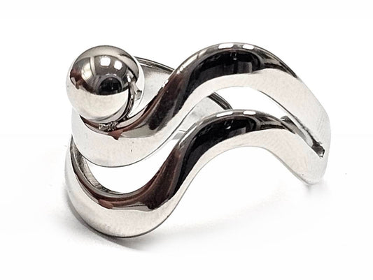 Μοντέρνο Γυναικείο Δαχτυλίδι Ασημένιο με Κυματοειδές Μοτίβο και Γυαλιστερή Σφαίρα | 2422-007A