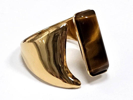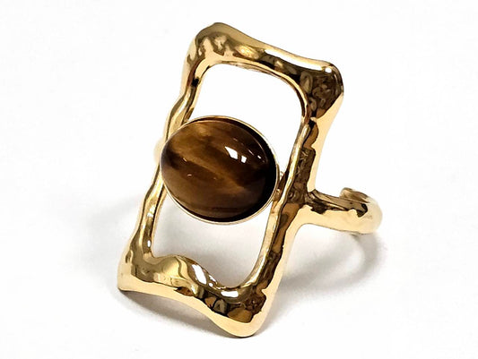 Γυναικείο Δαχτυλίδι με Οβάλ Καφέ Πέτρα και Χρυσό Κυματιστό Πλαίσιο | 2512-404X