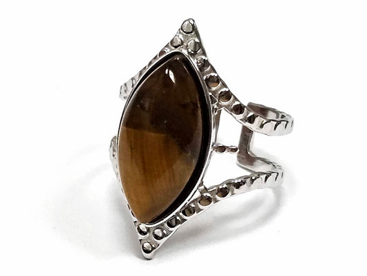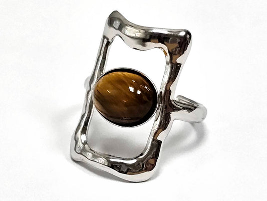 Γυναικείο Δαχτυλίδι Ασημί με Καφέ-Χρυσαφένια Πέτρα | 2512-402A