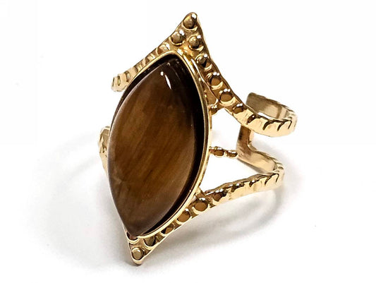 Γυναικείο Δαχτυλίδι με Καφέ Οβάλ Πολύτιμο Λίθο και Επιχρυσωμένο Διακοσμητικό Σχέδιο | 2512-402X