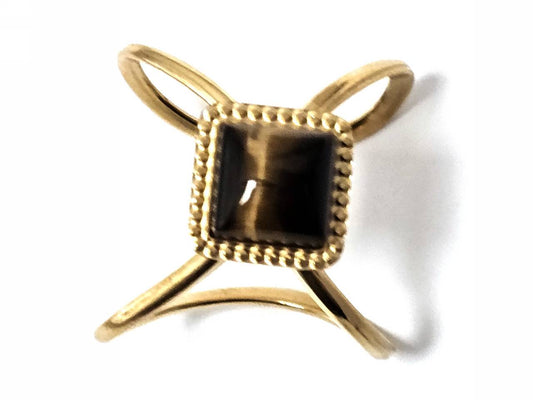 Γυναικείο Χρυσό Δαχτυλίδι με Τετράγωνο Καφέ Πετράδι | 2512-403X