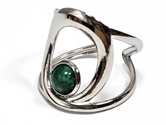 Γυναικείο Ασημί Δαχτυλίδι με Στρογγυλή Πράσινη Πέτρα και Μοντέρνο Σχέδιο | 2512-405A