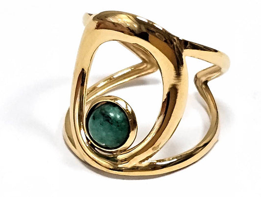 Γυναικείο Χρυσό Δαχτυλίδι με Πράσινη Σφαιρική Πέτρα και Μοντέρνο Σχέδιο | 2512-405X