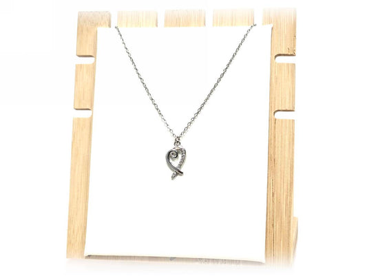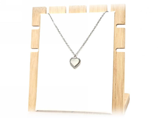 Κολιέ Ατσάλι 316L, αλυσίδα με καρδιά φίλντισι σε χρώμα Ασημί