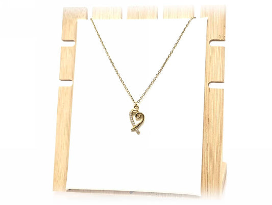 Κολιέ Ατσάλι 316L, αλυδίδα καρδιά με στρας σε χρώμα Χρυσαφί