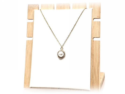 Κολιέ Ατσάλι 316L, αλυσίδα με πέρλα και στρας σε χρώμα Χρυσαφί