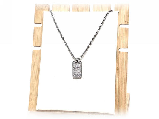 Κολιέ με Κρεμαστό Μοτίβο και Γυαλιστερά Ορθογώνια Στοιχεία από Ατσάλι | 2512-106A