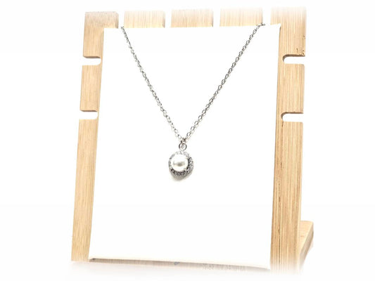 Κολιέ Ατσάλι 316L, αλυσίδα με πέρλα και στρας σε χρώμα Ασημί