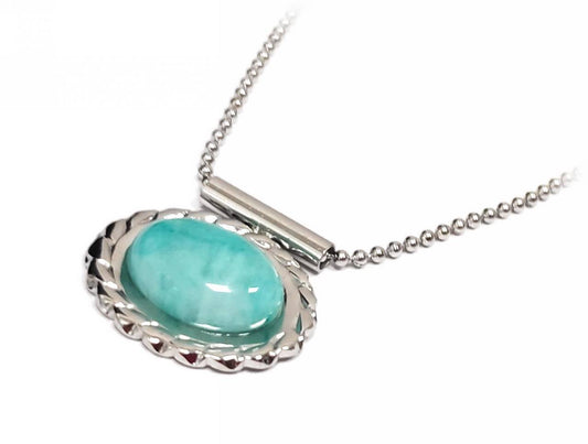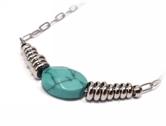 Γυναικείο Κολιέ με Ασημένια Αλυσίδα και Γαλάζια Οβάλ Χάντρα | 2212-460A