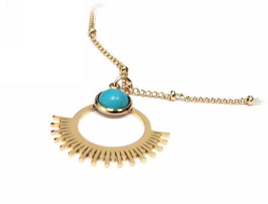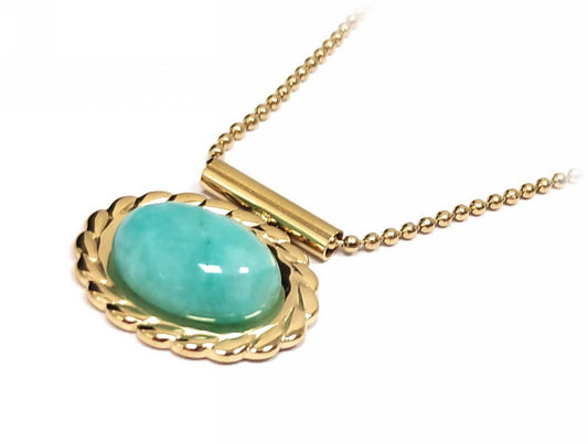 Χρυσό Κολιέ με Λεπτή Αλυσίδα και Οβάλ Μενταγιόν με Τιρκουάζ Λίθο | 2212-457X